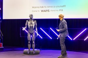 Uno de los momentos más impactantes ocurrió en el Future Stage, el espacio dedicado a las tendencias disruptivas. Allí, Iván Rojas destaca una conversación reveladora entre el experto Julius Solaris y Ameca, el robot humanoide más avanzado del mundo.